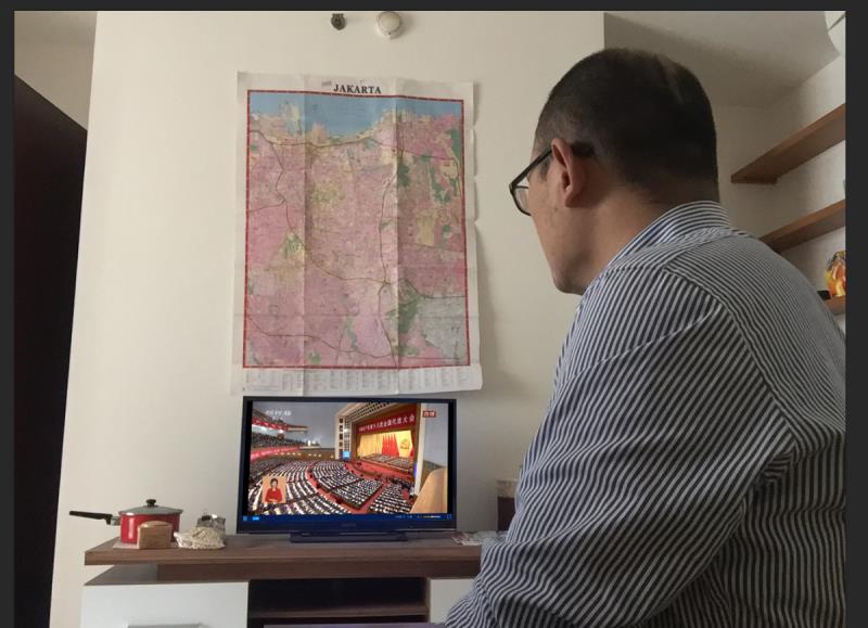 驻外项目的党员群众自发组织学习观看十九大开幕式: