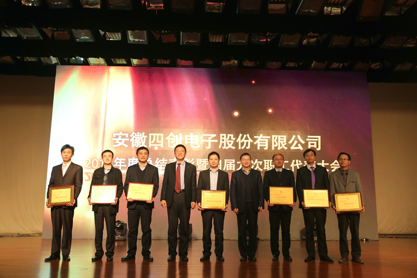 大会还对2016年度各项荣誉进行了表彰,新能源事业部、通信导航事业部、安防事业部、气象探测事业部、雷达装备部、工程技术室、企业运营部等7个部门荣获年度“先进集体”;3D交通管理雷达研发团队、智慧与安全大数据技术研讨会策划团队、CMMI5级资质申报团队、降本增效团队、重大资产重组团队、无线城市平台研发团队、国家重大科学仪器开发专项项目组、电子商务采购平台项目组、无线城市创新管理研究团队、危险车辆智能联网联控系统项目组等10个团队荣获年度“优秀团队”;市场部主任袁园被授予“总经理特别奖”,安防事业部副总经理郑雅玲、系统软件室主任范联伟、采购招标中心主任王自柯被授予年度“杰出经理人”;高洪昌、唐瑾、薛虎、高磊、吴斌、廖志强、洪建荣、年欣等8人荣获年度“杰出员工”;姚黄、陈鸣、杨劲松、黄微琳、胡俊等5人荣获年度“优秀新人”;占燕萍等53名员工荣获年度“优秀员工”称号。大会对获奖集体和个人分别进行了表彰。