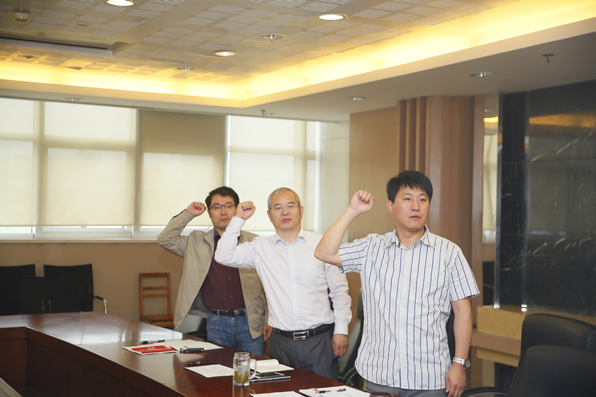 为进一步推进公司“两学一做”学习教育深入开展,6月3日上午,公司召开了新一届党总支委员会首次会议。王晓龙书记为每位总支委员颁授党徽,带领大家再一次握紧右拳,举起右手,重温入党誓词,不忘入党初心,坚定理想信念。
