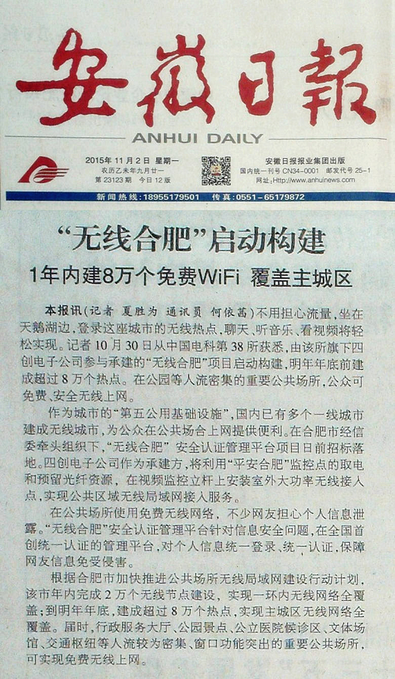 【媒体视角】新华网、安徽日报等多家媒体报道365在线体育投注官网,beat365在线体育承建“无线合肥”平台项目