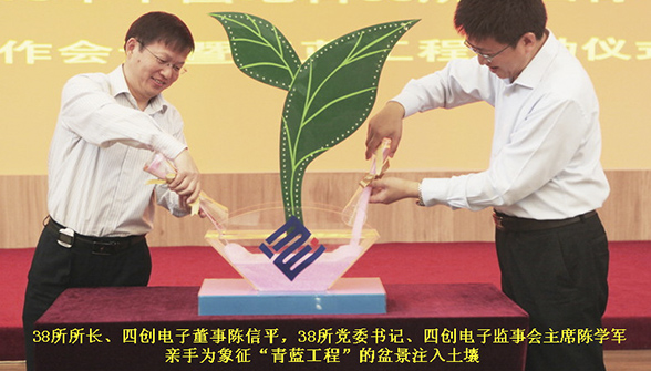 张宇星副书记宣布38所“青蓝工程”正式启动。陈信平所长、陈学军书记亲手为象征“青蓝工程”的盆景注入土壤。该工程主要目的,是在全所范围内鼓励和弘扬以老带新、以新促老、青蓝结对、携手共进,积极培育团员青年独立工作、自主创新的能力和爱岗敬业、科学严谨的工作作风。