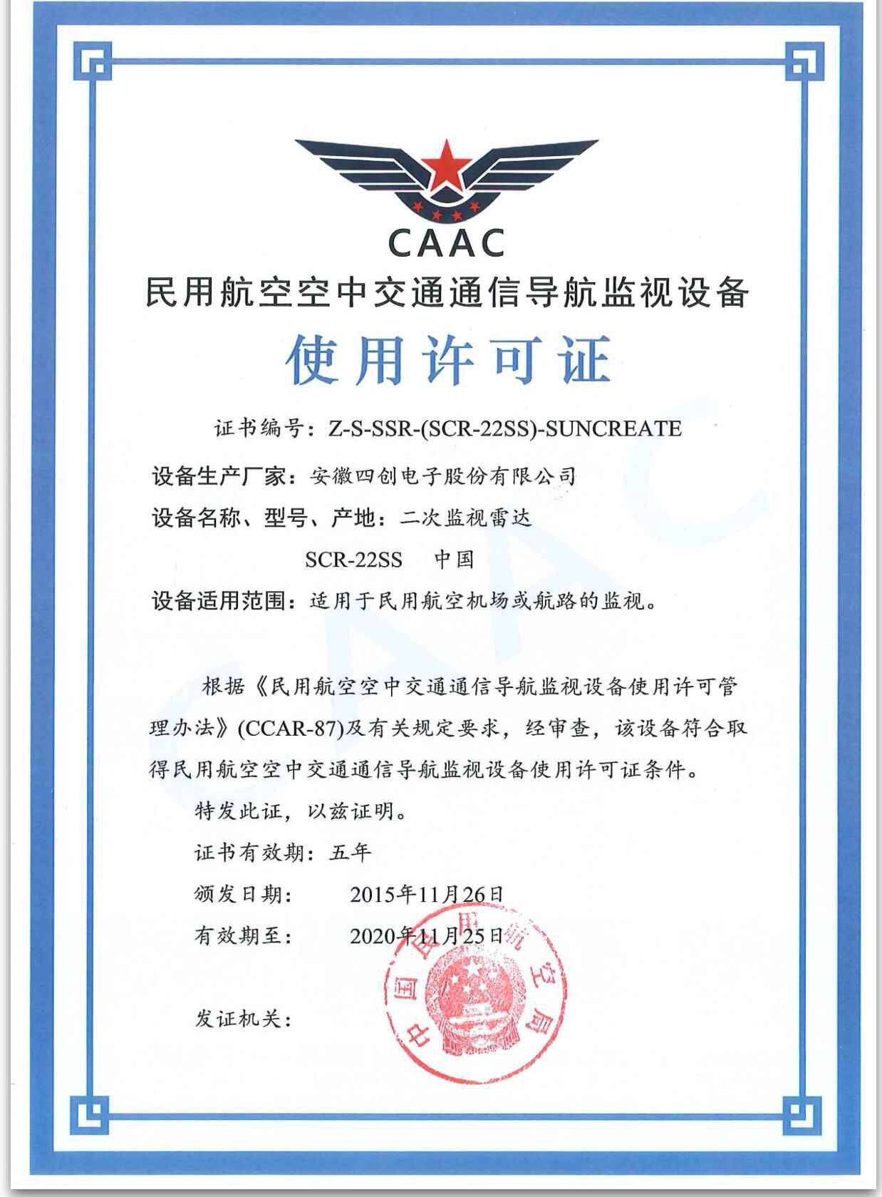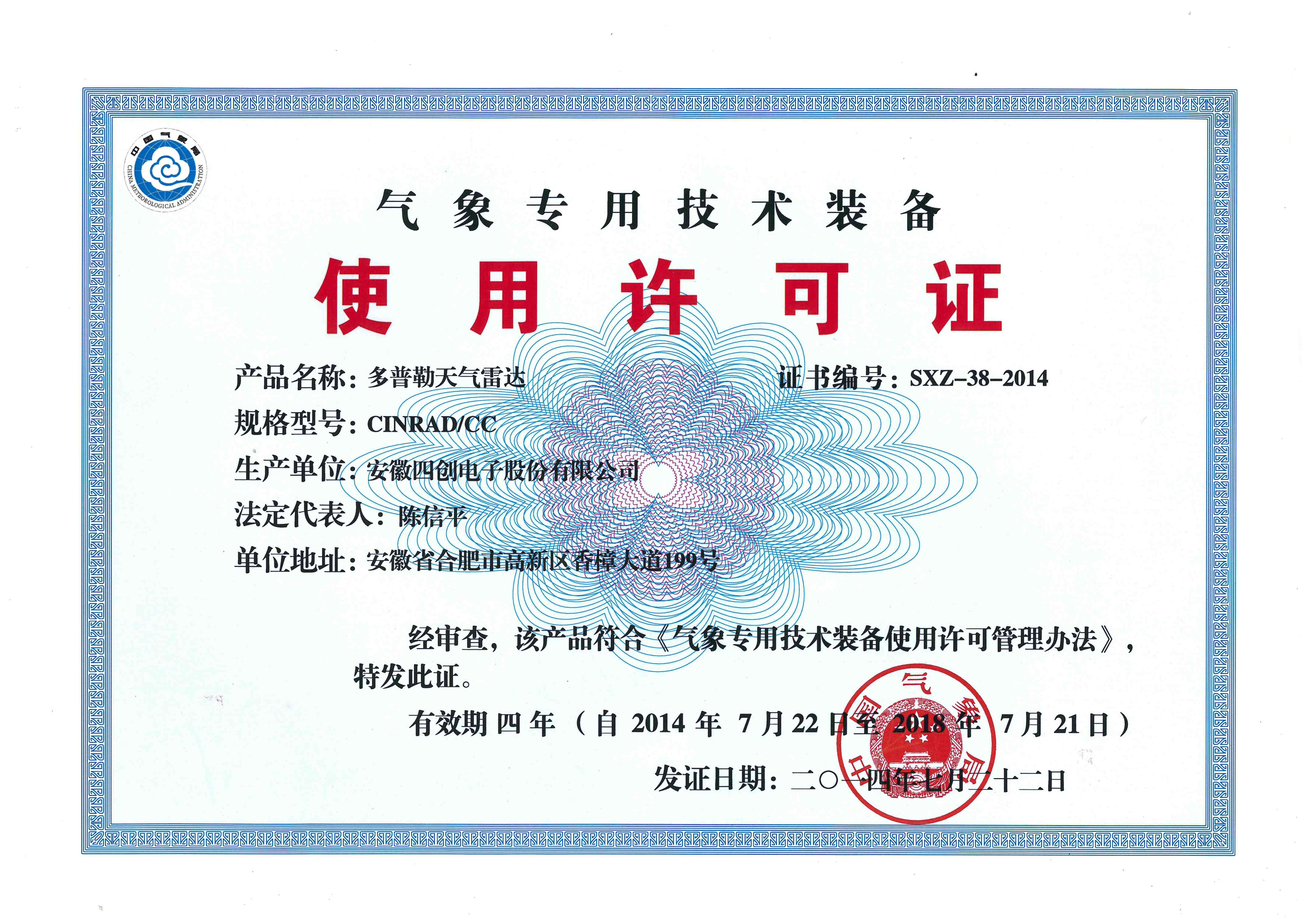 气象专用技术装备使用许可证
