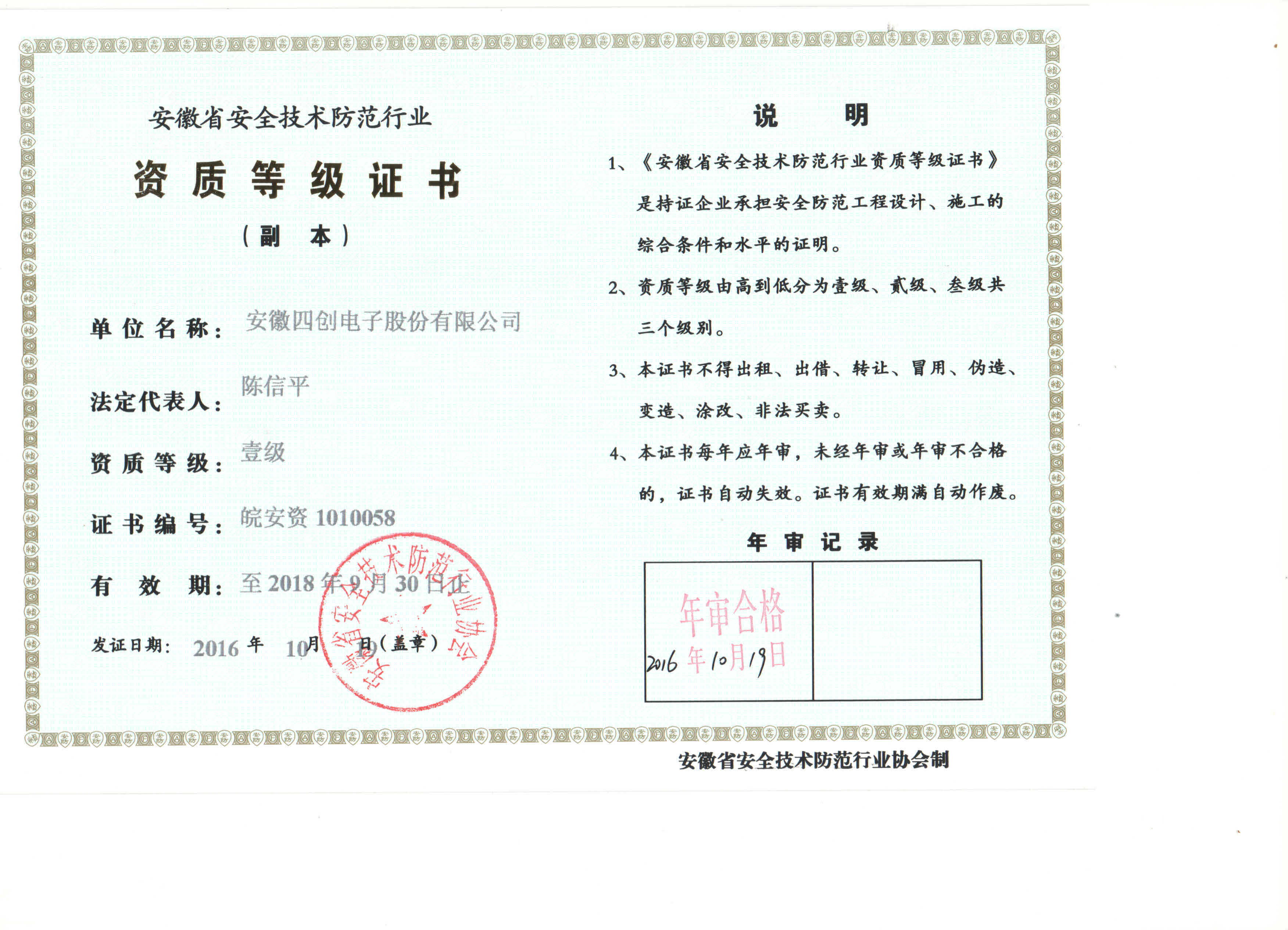 安徽省安全技术防范行业资质等级证...