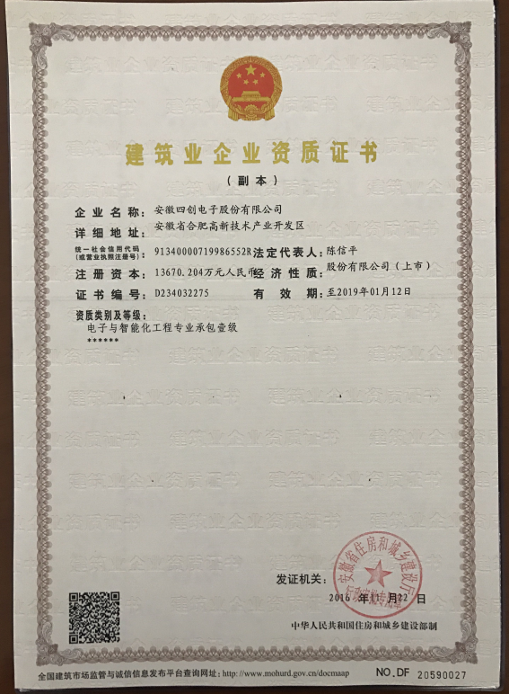 电子与智能化工程专业承包壹级资质